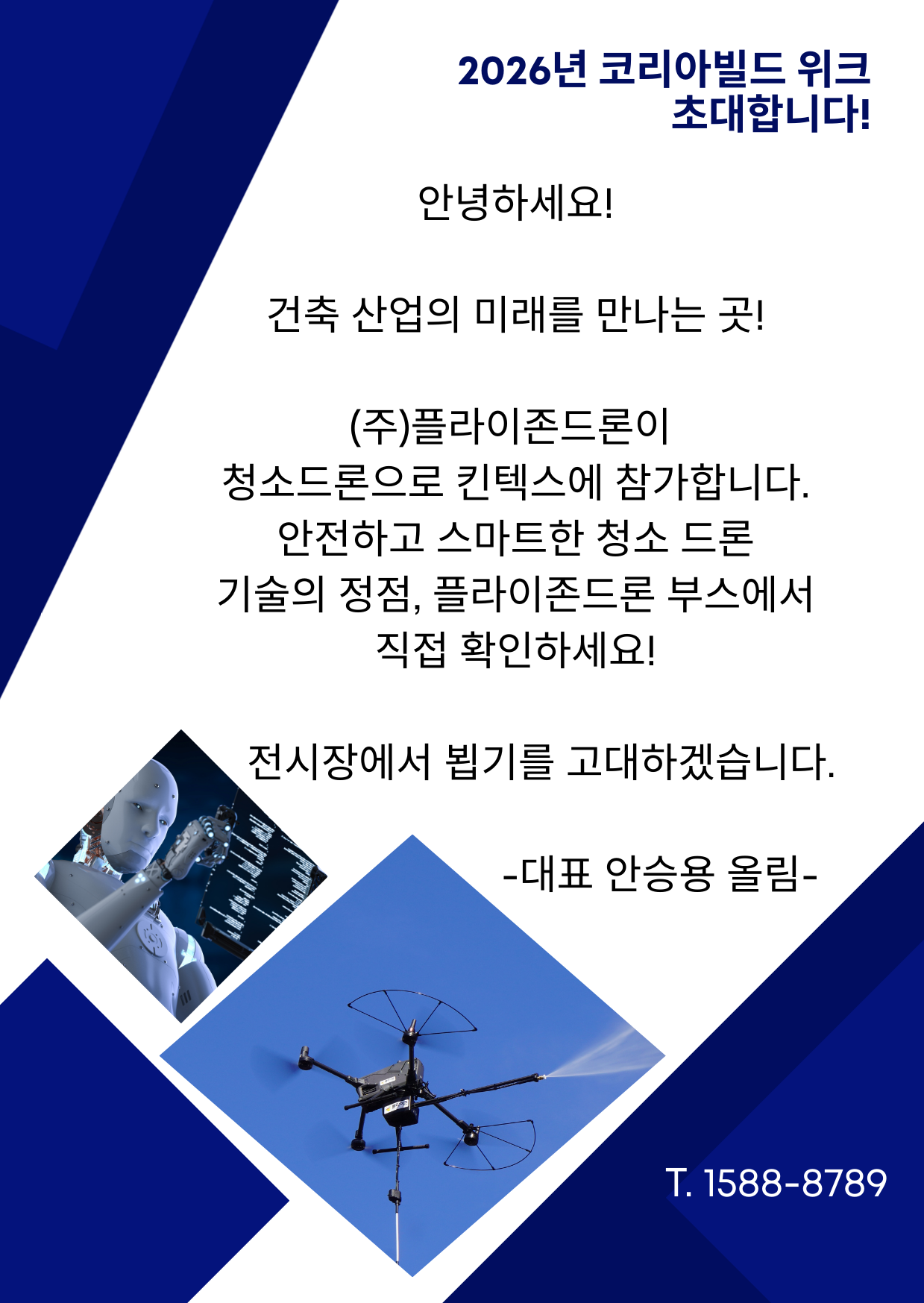 저희 (주)플라이존드론이 국내 최대 건축 전시회인 '코리아빌드'에 청소드론으로 참석합니다!
