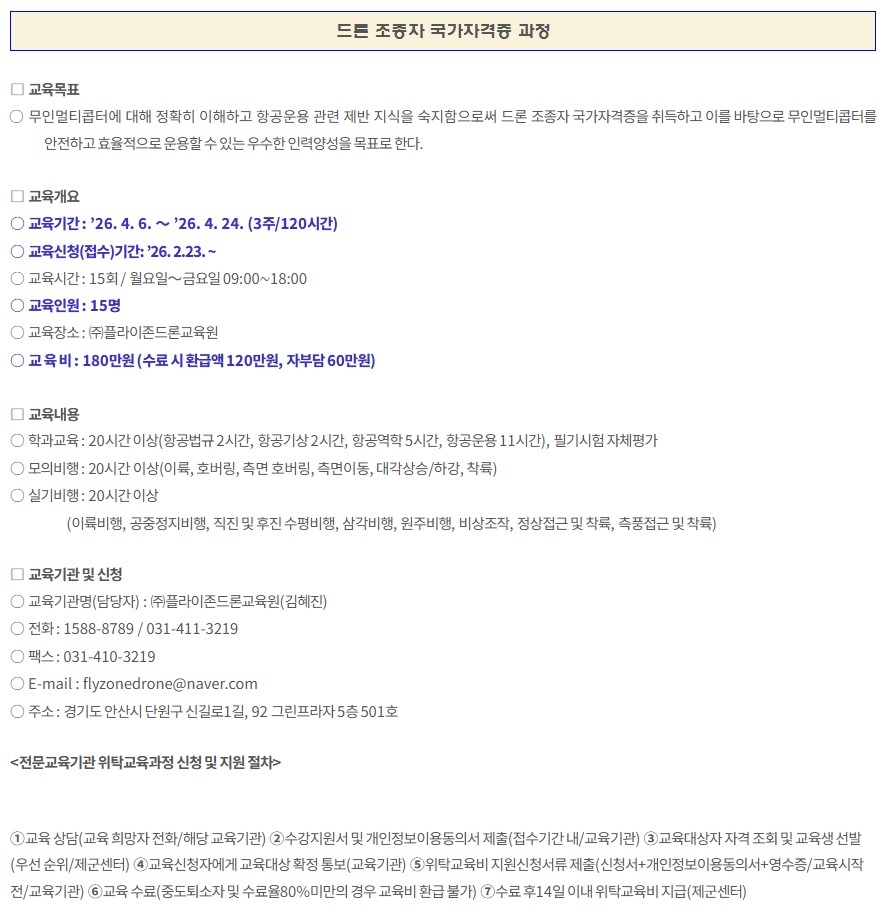 2026년 제대군인 드론조종자 국가자격증 위탁교육과정 수강 신청 안내
